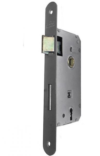Cerradura p/Puerta de interior, frente angosto canto redondo.